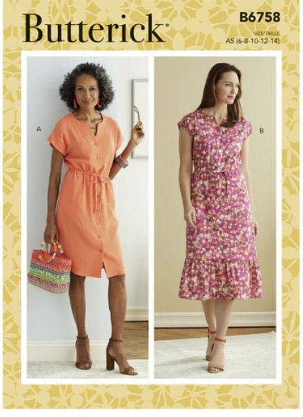 Butterick Sewing Pattern B6762 Misses Shirtwaist Dress Buttons At Front